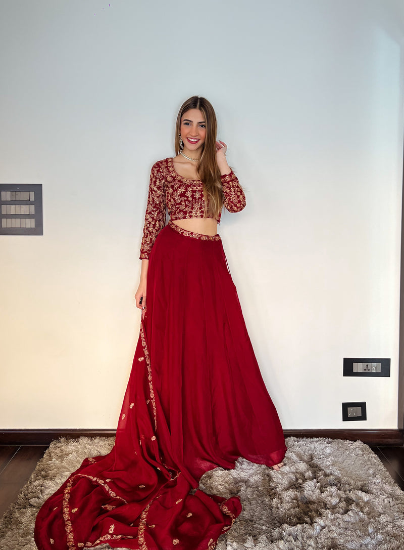 Niki Mehra (@nikimehra) ANTARA - Velvet Maroon Anarkali Set