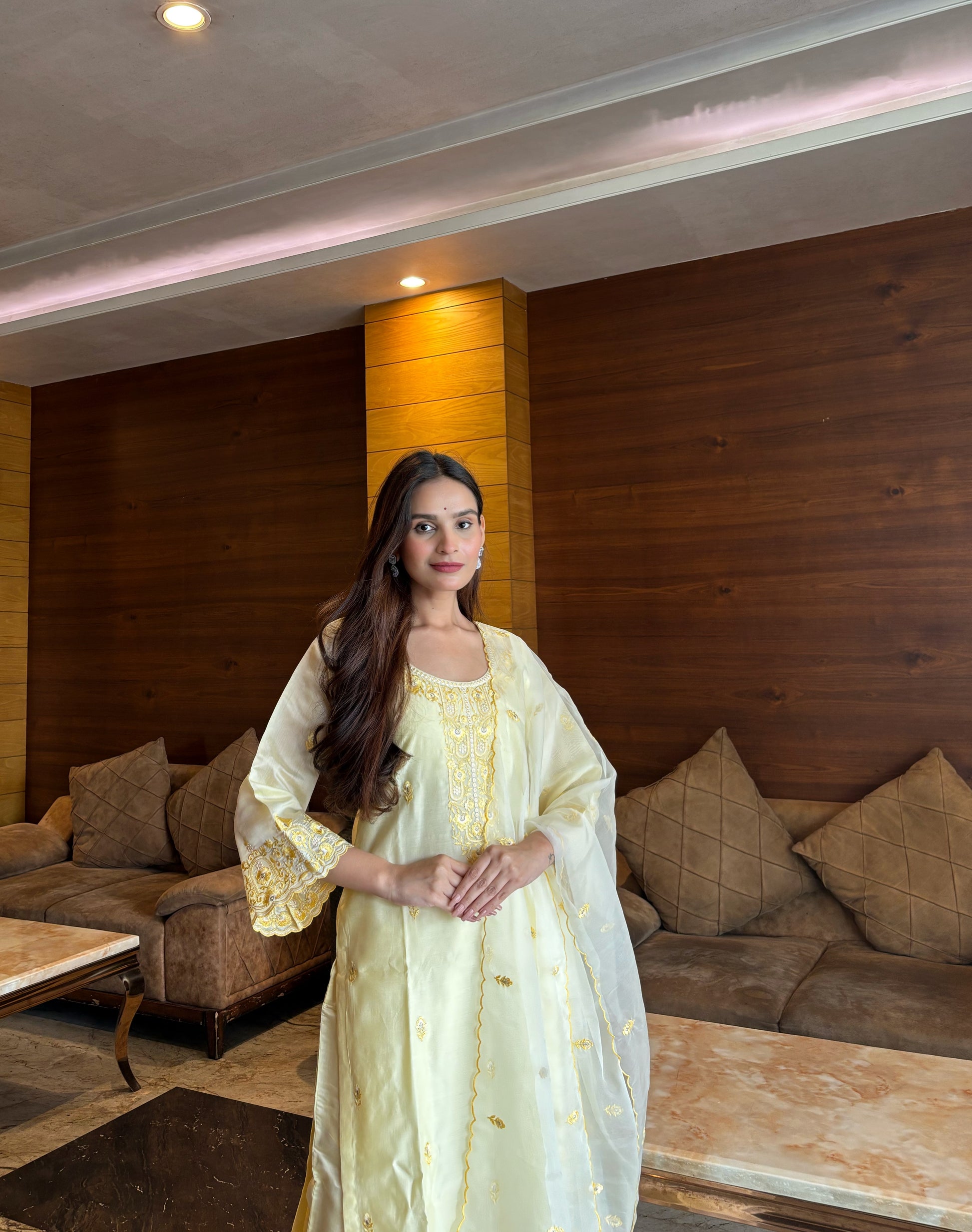APOORVA SHARMA in TARINI - Lime Yellow Chanderi Suit Set