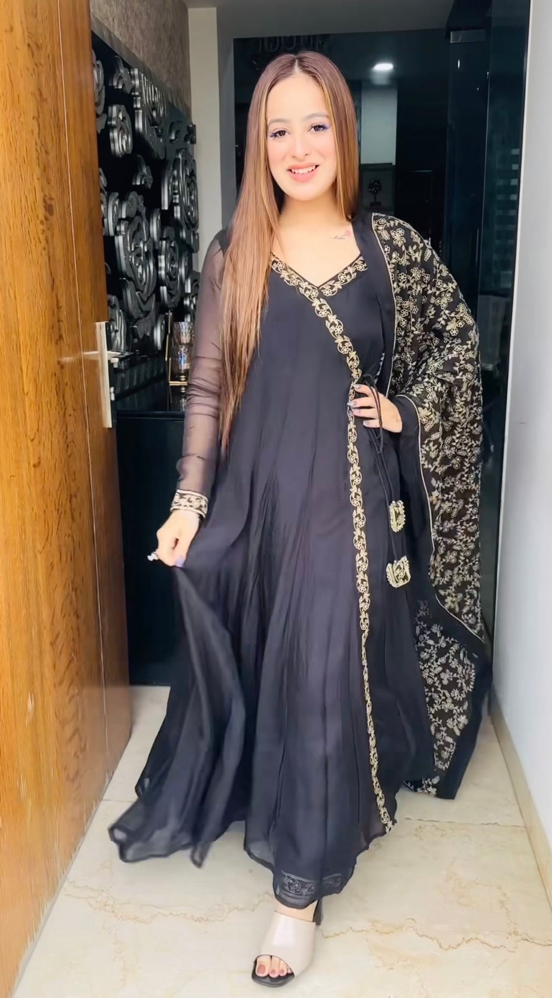 Kavleen Kaur in Sunehri Black Angrakha Anarkali