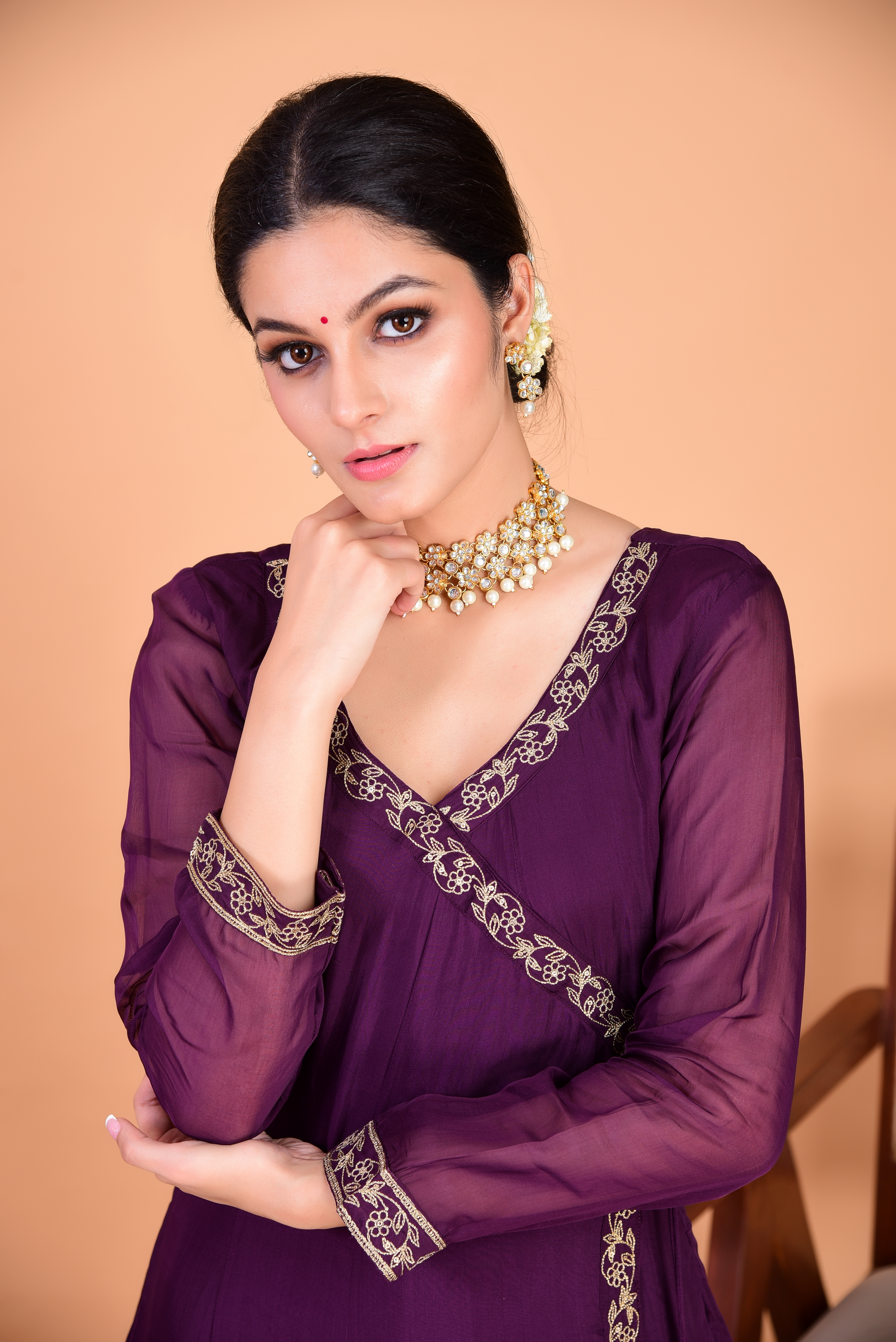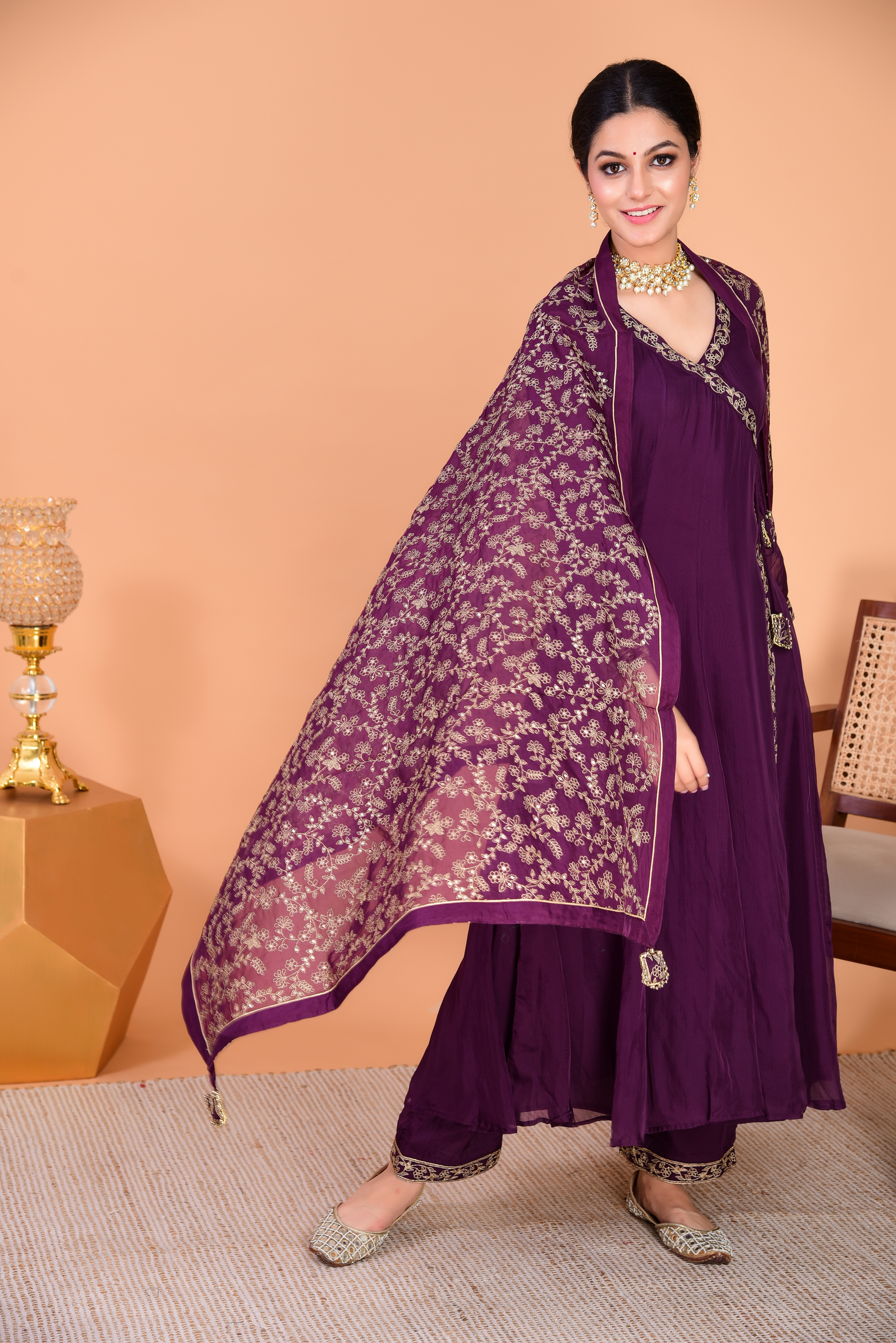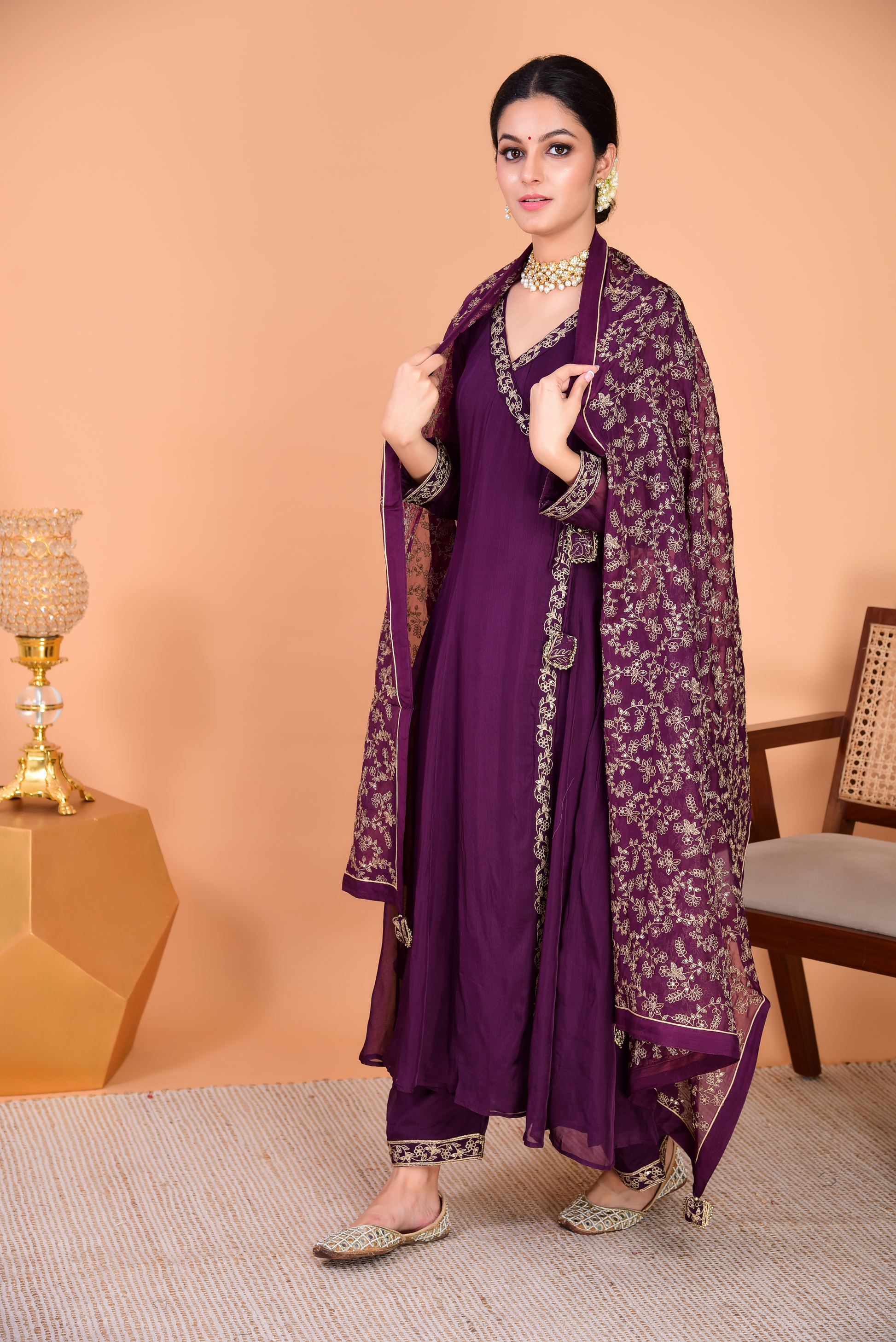 Sunehri Purple Angrakha Anarkali Set