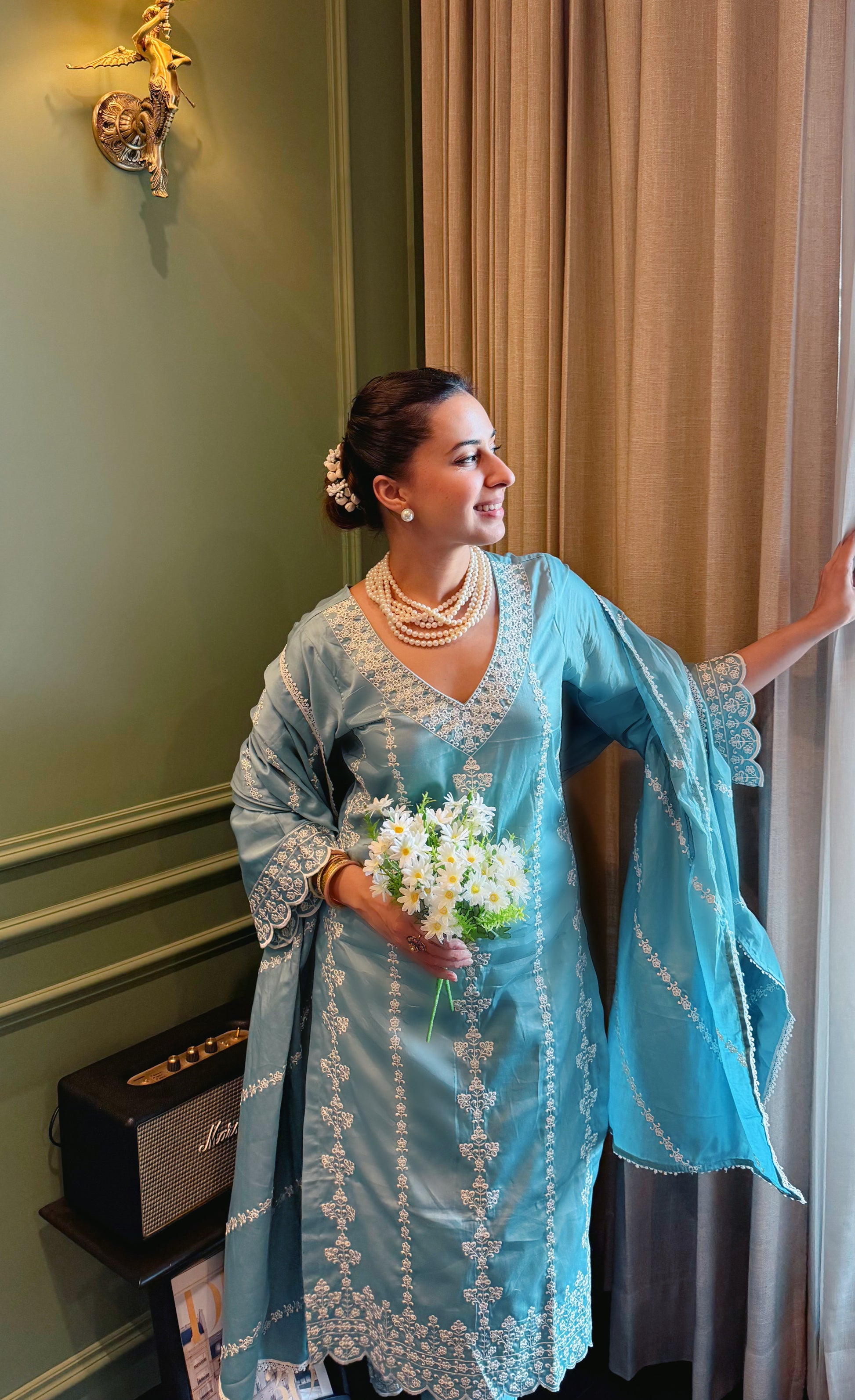 Sania Chadha in JHEEL - Blue Cotton Suit Set