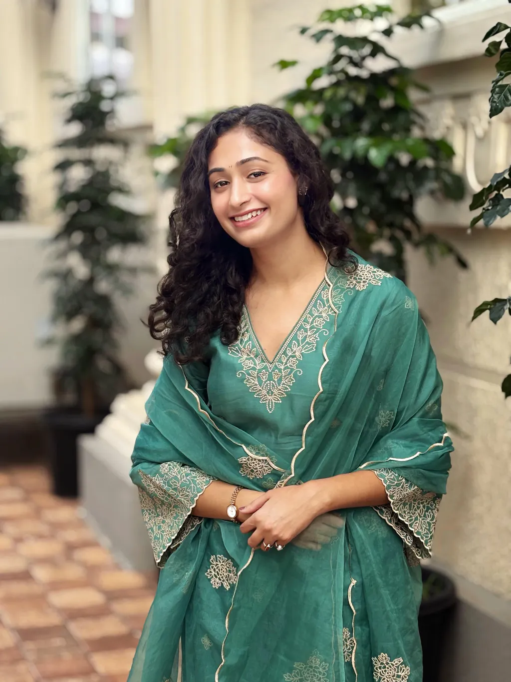 Shreya Lakhani in Pine Green Chanderi Silk Suit Set