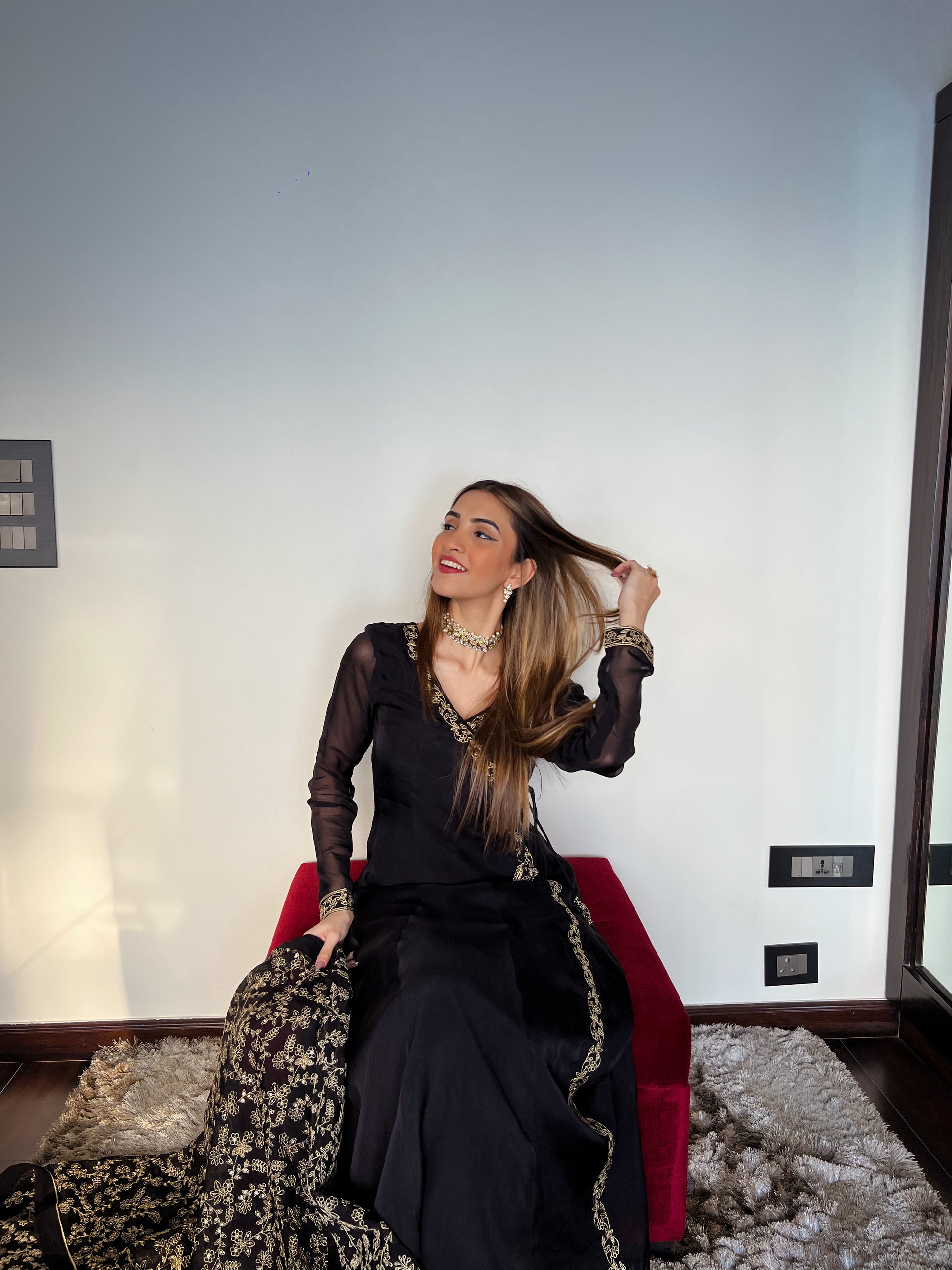 Shreya Lakhani in Sunehri Black Angrakha Anarkali Set